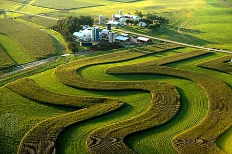 The soil conservation method proves efficient in slope territories and suggests planting species along the contour. Rows up and down the slope provoke soil erosion due to water currents while rows along the contour restrain it.